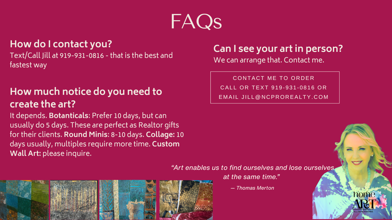 Contact Jill by text/call at 919-931-0816